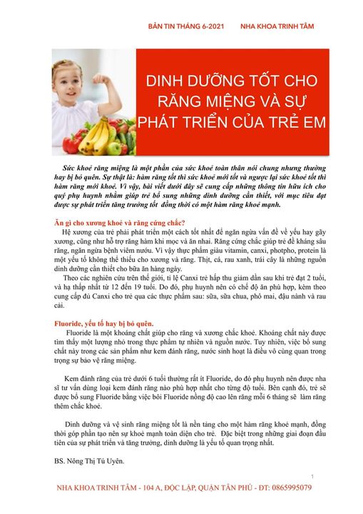 Đón xem bản tin tháng 6/2021 của nha khoa Trinh Tâm về chủ đề “Dinh dưỡng tốt cho răng miệng và sự phát triển của trẻ”